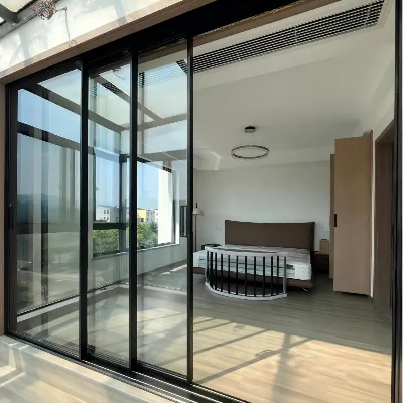 Modern Design Double Tempered Glass Noiseless Sliding Doors Exterior Interior Villa Balcony Patio Glass Aluminum Door