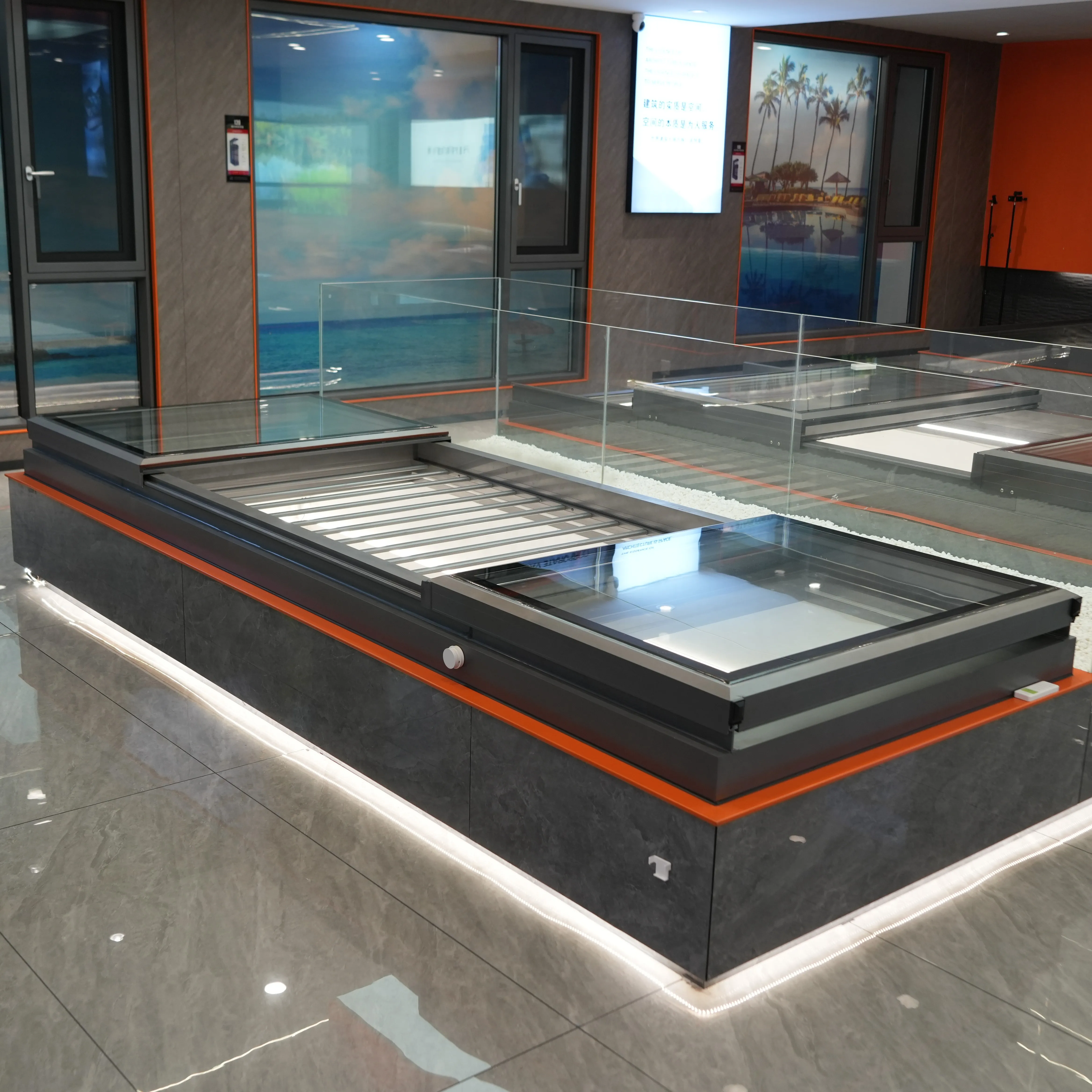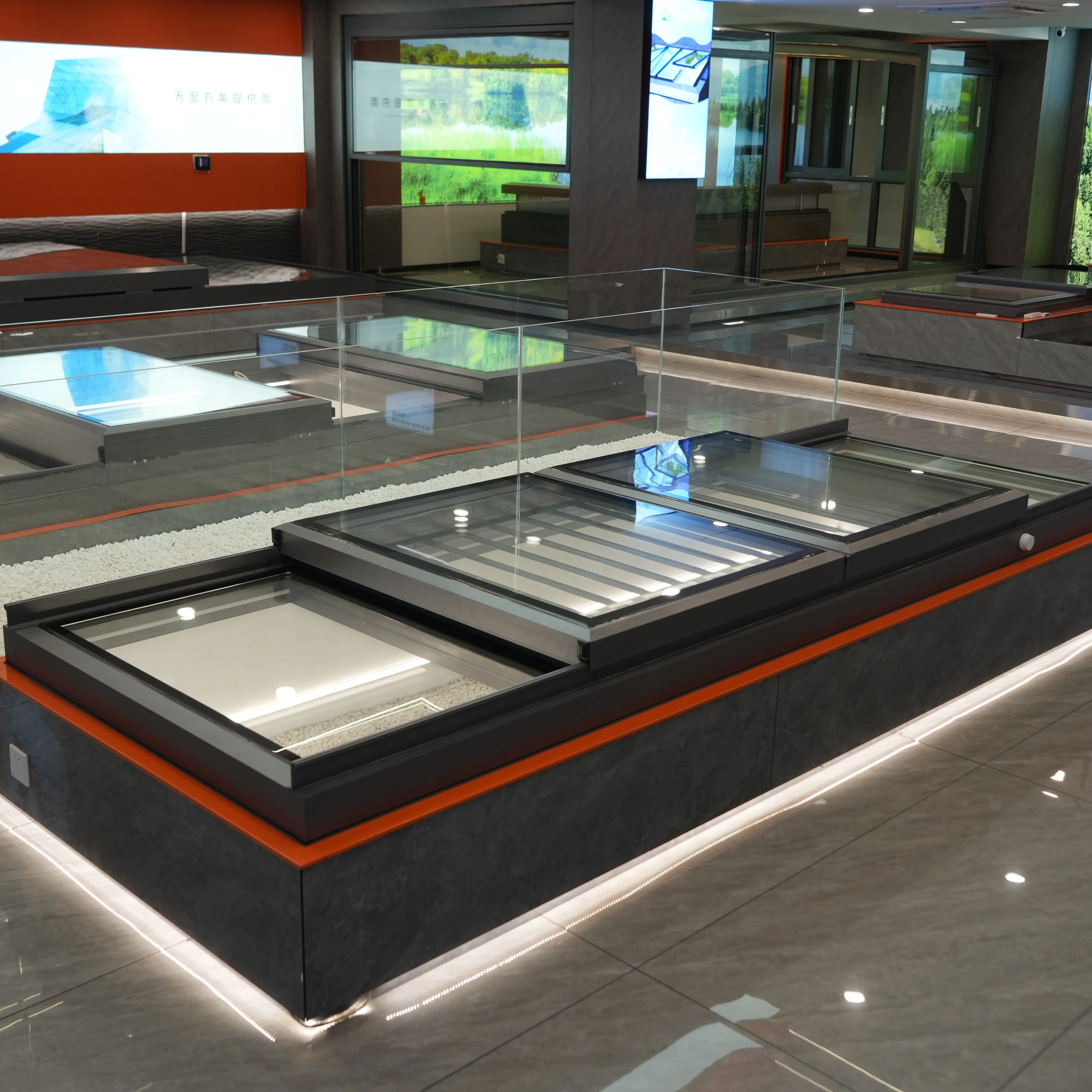 Larg Përbërje Aluminj Me Larg Vitrinë Larg Larg Zhdrejtë Design Modern Apartament Ndërmjetore Kuzhine Dhe Larg Dhomë Pjesë e Larg